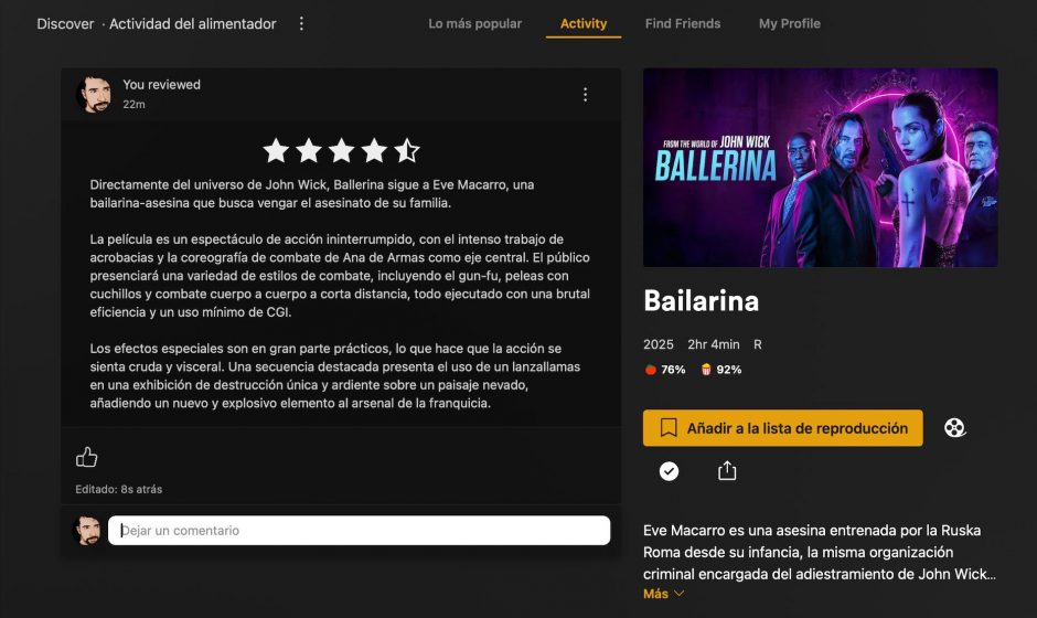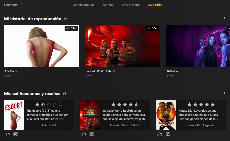 Esta personalización va de la mano con las nuevas funciones de networking, que facilitan la conexión con amigos o con usuarios que comparten intereses similares. Puedes ver lo que tus amigos están viendo, lo que han calificado y sus reseñas, creando una especie de “feed” social dentro de la plataforma. Esta característica es particularmente valiosa para aquellos que buscan recomendaciones de personas en las que confían, en lugar de depender únicamente de los algoritmos.