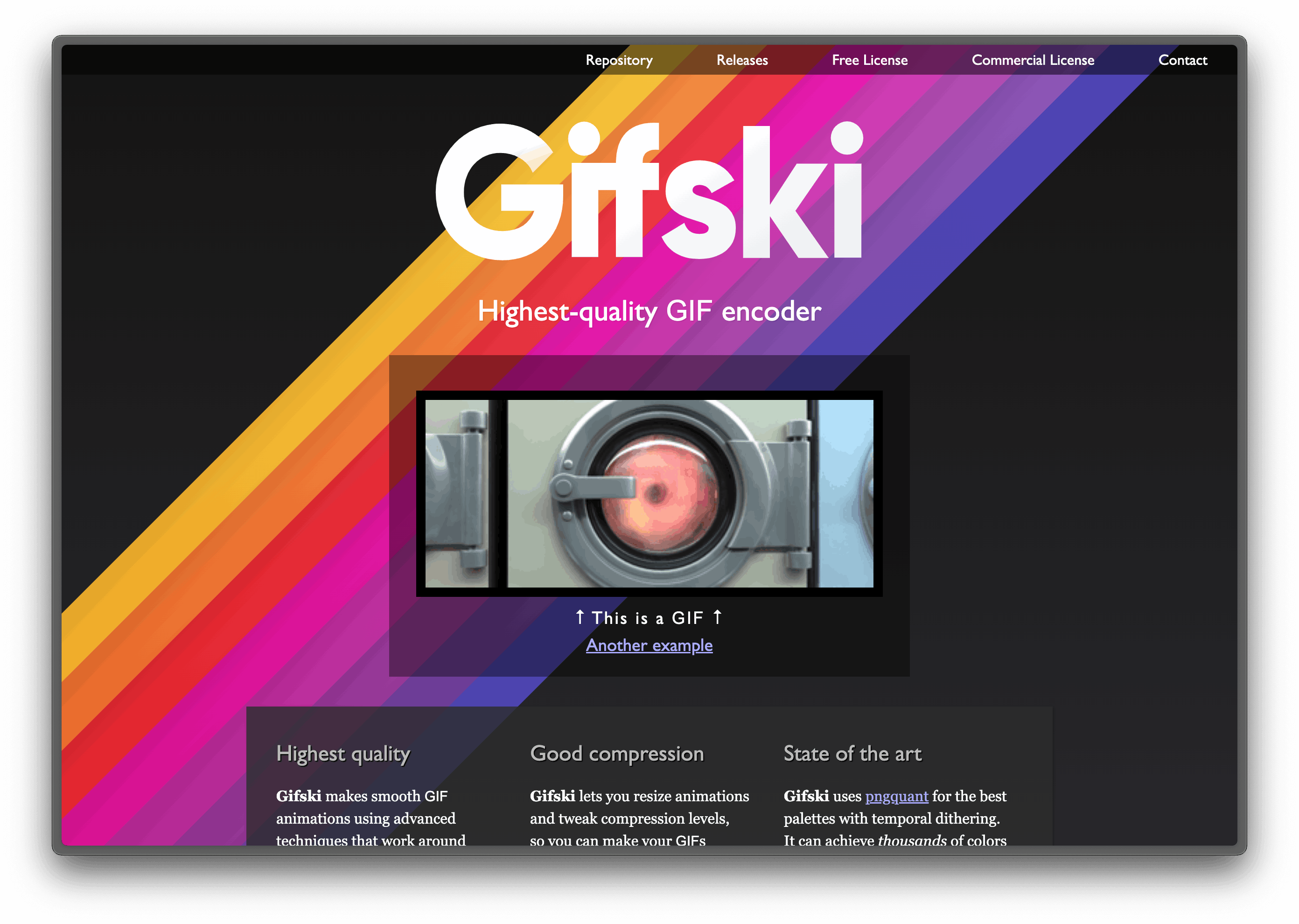 Gifski toma un archivo de video (por ejemplo, .mp4, .mov, .mkv, etc.) y lo convierte en un GIF animado.