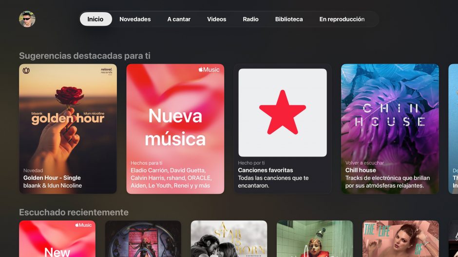 - Contenido principal: La pantalla muestra la fila de “Sugerencias destacadas para ti”, que es el núcleo de la personalización de Apple Music.