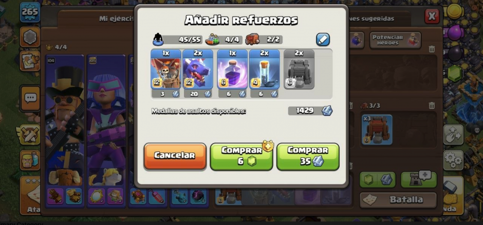 Ahora es posible rellenar el Castillo del Clan utilizando Medallas de Asalto o, para quienes prefieren la inmediatez, mediante donaciones rápidas en gemas. Esta integración de recursos hace que la preparación para las batallas sea mucho más fluida y menos dependiente de la disponibilidad de otros miembros del clan.