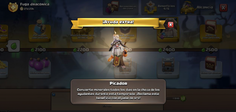 Este ayudante exclusivo de la temporada se activa con el pase de oro y tiene la función de convertir minerales diariamente en la choza de los ayudantes. Aunque su ubicación en el tramo final del pase ha generado debate, su utilidad para el farmeo de minerales de equipo es incuestionable. 🤷🏻♂️